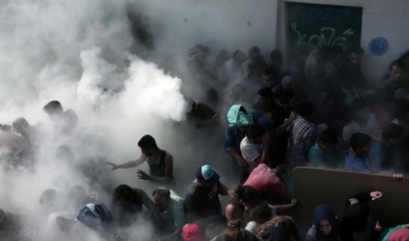 وقال مراسل لقناة أيه.إن.تي1 الاخبارية اليونانية من موقع الحدث إن الشرطة أطلقت الغاز المسيل للدموع لتفريق المهاجرين.