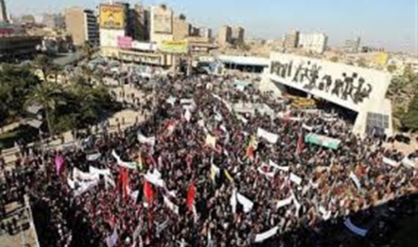 مئات العراقيين يتظاهرون بساحة التحرير وسط بغداد مطالبين بمحاربة الفساد