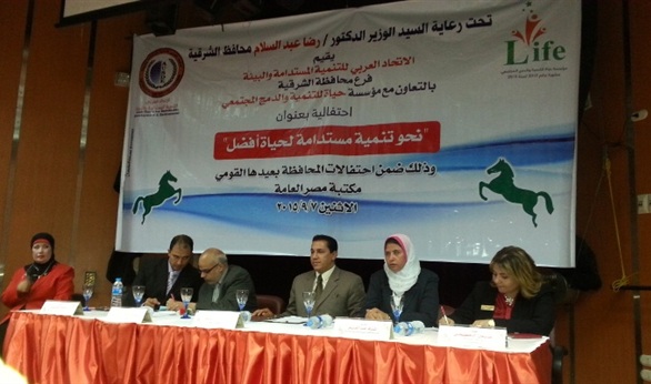 شارك الدكتور رضا عبد السلام محافظ الشرقية فعاليات ندوة " نحو تنمية مستدامة لحياة أفضل " والتى ينظمها الاتحاد العربى للتنمية المستدامة بالشرقية بالتعاون مع مؤسسة حياة للتنمية والدمج المجتمعى بمكتبة مصر العامة بالزقازيق والتي تاتي ضمن احتفالات المحافظة بعيدها القومي.