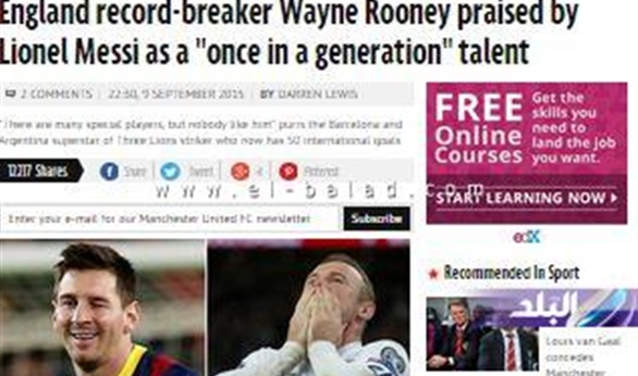 قال ميسي في تصريحات لصحيفة "ميرور" الإنجليزية: "روني لاعب لا يظهر إلا مرة واحدة في كل جيل، ولا يمكن مقارنته بأي لاعب آخر".