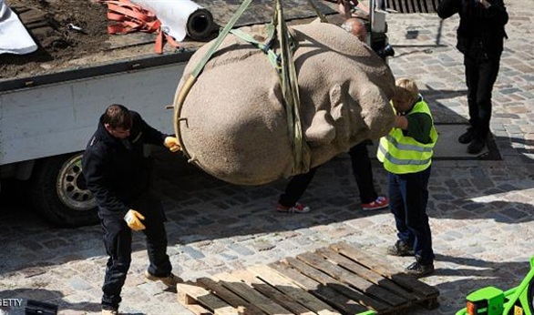 استخرجت رأس التمثال الضخم لزعيم الثورة السوفيتية فلاديمير لينين، من أرض غابات على أطراف برلين، الخميس، في طريقها للعرض ضمن معرض بالعاصمة الألمانية، بعد 24 عاما على دفنها، فيما ستظل باقي الأجزاء مدفونة.