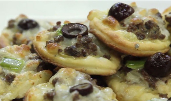 اخلطى الدقيق مع الخميرة والملح و السكر ثم الزيت و كوب زبادى و بيضتين حتى تصبح عجين . إتركى العجين ليخمر. قسمى العجين الى كور ثم إفرديها على شكل دوائر. إخفقى كوب زبادى مع بيضتين مع اللحم المعصج ثم ضعيه فوق دوائر العجين و ضعى الجبن على الوجه للتزيين و ضعيها فى الفرن حتى تمام النضج. تقدم فور خبزها.