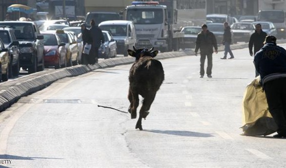 ثور تركي يهرب خوفا من التضحية به في العيد