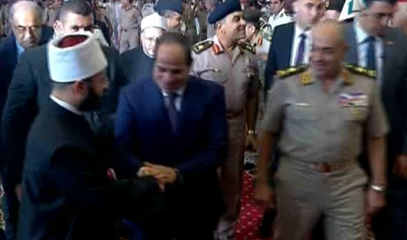 وصافح الرئيس عقب انتهاء الصلاة كلا من المهندس شريف إسماعيل رئيس مجلس الوزراء والفريق محمود حجازى رئيس أركان حرب القوات المسلحة وفضيلة الإمام الأكبر الدكتور أحمد الطيب شيخ الأزهر واللواء مجدى عبد الغفار وزير الداخلية والدكتور شوقى علام مفتى الديار المصرية، وجموع المصلين.