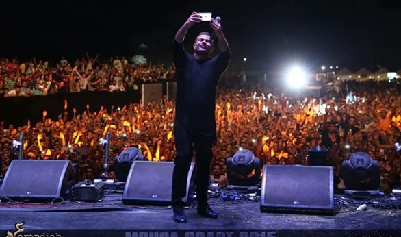 حرص الهضبة عمرو دياب علي التقاط صورة له بطريقة "السيلفي" من مسرح "موسي كوست" الذي أحيا عليه حفل العيد مساء الجمعة.