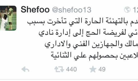 تقدم محمد عبد الشافي لاعب الزمالك السابق ولاعب أهلي جدة السعودي الحالي بالتهنئة لنادي الزمالك على التتويج بالثنائية المحلية في مصر الدوري الممتاز وكأس مصر.