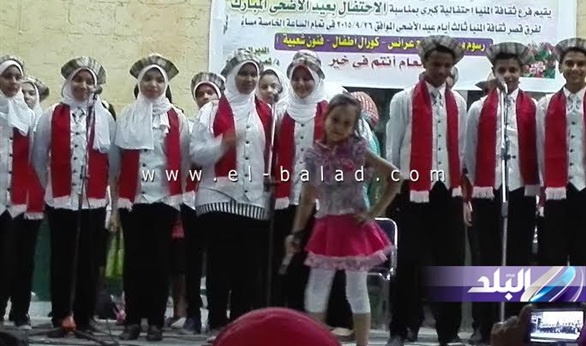 نظم فرع ثقافة المنيا التابع لاقليم وسط الصعيد الثقافي برئاسة الدكتورة فوزية ابو النجا، احتفالاً فنياً بمناسبة عيد الاضحي ، تضمن ورشة فنية ورسماً على الوجه وعروضا لمسرح العرائس كما تضمن فقرة الاراجوز وعرضين لفرقتي كورال الاطفال والفنون الشعبية لقصر ثقافة المنيا بمقر النادي الرياضي بمدينة المنيا.
