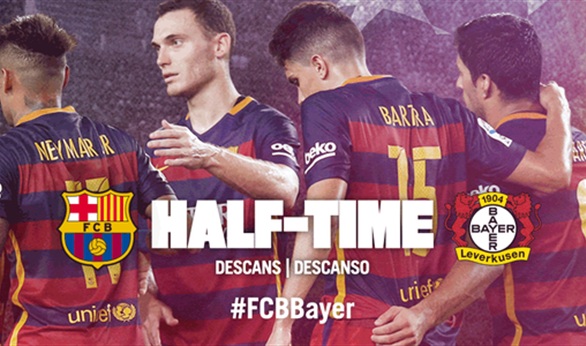 انتهى الشوط الأول من مباراة برشلونة الإسبانى وضيفه باير ليفركوزن الألمانى المقام حالياً على ملعب الكامب نو، فى إطار منافسات الجولة الثانية من دور المجموعات لبطولة دورى ابطال اوروبا لكرة القدم , بتقدم الأخير بهدف مقابل لا شيء.