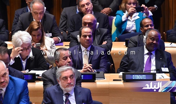 وفى ثانى أيام زيارة الرئيس لنيويورك، ألقى كلمـــة بالأمم المتحدة أمام قمة اعتماد أجندة التنمية لما بعد 2015، والتى شدد فيها على ضرورة أن يتعامل المجتمع الدولى بفعالية مع التحديات الأخرى التى تعرقل تحقيق التنمية المستدامة وأهمها الإرهاب، وقال إن الشعب المصري، فى مسيرته من أجل البناء والتعمير، يواجه أخطر فكر إرهابى ومتطرف.