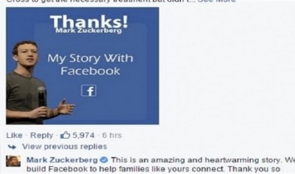 وقال زوكربيرج في تعليقه: “لقد بنينا فيسبوك لمساعدة العائلات مثل عائلتك على التواصل. شكراً جزيلاً لك على مشاركة هذه القصّة”، ظنّا منه أن الفيسبوك جمعها فعلًا مع أمها.