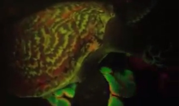 قال دايفيد جاربر، عالم أحياء بحرية "من حيث لا ندري ظهرت هذه السلحفاة المضيئة، وفوجئنا بها تسبح أمام أضوائنا، والتى كانت كسفينة فضاء كبيرة خضراء وحمراء متوهجة تسبح قربي تماماً” حسبما دكرت السى ان ان.