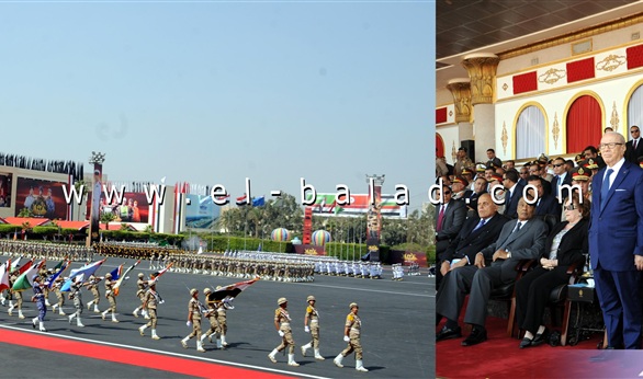 شهد الرئيس عبد الفتاح السيسي، يرافقه الرئيس التونسي الباجي قائد السبسي، العرض العسكري للقوات المسلحة، في الذكرى الـ42 لانتصارات أكتوبر المجيدة، حاملين علم القوات المسلحة رمز العزة والكرامة.