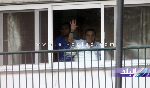 حيي الرئيس الأسبق محمد حسني مبارك أنصاره الذين توافدوا إلى مستشفى المعادي التي يقيم بها وذلك بمناسبة ذكرى انتصارات أكتوبر.