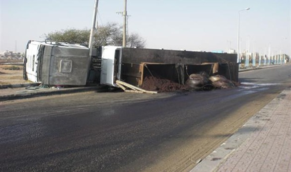 انقلاب سيارة نقل محملة بالسولار بطريق "طنطا - المحلة"