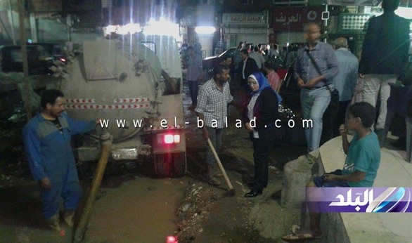 بالصور.. شفط مياه الصرف الصحي من شوارع العمرانية