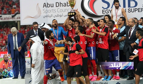 وقلد جمال علام رئيس اتحاد الكرة رفقة أعضاء اللجنة المنظمة للمباراة ووفد مجلس أبوظبى الرياضى الميداليات للاعبى الفريق الأحمر , ومن ثم تسليم كأس البطولة لعماد متعب كابتن الأهلى الذى قدمه بدوه لحسام غالى نجم المباراة ليرفعه على منصة التتويج وسط صيحات وأهازيج الجماهير واللاعبين .