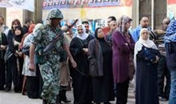 وتشهد اللجان إقبالا ملحوظا من السيدات وسط هتافات تحيا مصر .