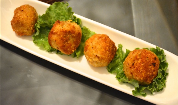 2- يسخن الزيت ونقلي كرات البطاطس حتى يصبح لونها ذهبي من الطرفين وتقدم