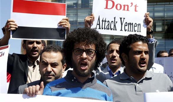مئات يحتشدون في اليمن احتجاجا على الضربات الجوية للتحالف الذي تقوده السعودية