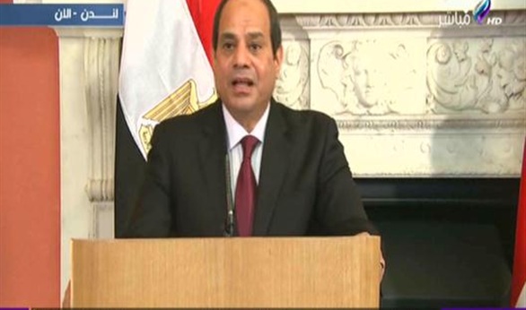 وجه الرئيس عبد الفتاح السيسي، التحية إلى رئيس الوزراء البريطاني ديفيد كاميرون على حسن استقباله والوفد المرافق له في بريطانيا، معرباً عن ثقته بأن التعاون بين البلدين سوف يحقق مصلحتهما.