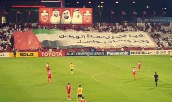 رفعت جماهير نادى أهلى دبى الإماراتى خلال لقاء فريقها مع جوانجزو الصيني، في ذهاب نهائي دوري أبطال آسيا، "تيفو" أو " دخلة " كتبت عليه : "تحية فخر لحماة الوطن وجنودنا البواسل".