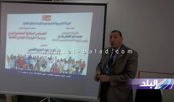 نظم فرع ثقافة قنا سلسلة من ندوات حول أدبيات سوسيولوجيا الثقاقة والسكان، ضمن البرنامج التدريبي “لتنمية مهارات قيادات المواقع الثقافية”الذي تقيمه الادارة المركزية للتدريب واعداد القادة الثقافيين بالتعاون مع إقليم جنوب الصعيد الثقافي، تحت رعاية الدكتور محمد أبو الفضل بدران، رئيس الهيئة العامة للقصور الثقافة.