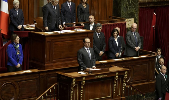جاء ذلك في الكلمة التي ألقاها اليوم / الإثنين / أمام الجمعية الوطنية " البرلمان " والتي بدأت بالوقوف دقيقة حداداً على ضحايا اعتداءات باريس.
