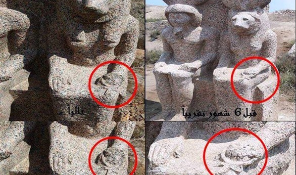 وقالت المصادر، ان تمثال سخمت علي شكل امرأة برأس لبوءة وتمسك بقبضة يدها اليسرى علامة العنخ (الحياة في اللغة المصرية القديمة)، وهو الجزء الذي تعرض للتلف والتدمير في التمثالين.