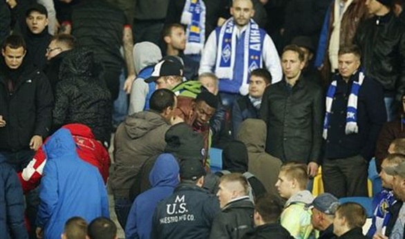 وعكرت "تصرفات عنصرية" المباراة التي أقيمت في العاصمة كييف من جانب مشجعين للنادي، وأدت إلى "إقفال مدرج" الملعب الاولمبي، فيما أظهرت مشاهد فيديو مشجعين من البشرة السوداء يتعرضون لاعتداءات في المدرجات.