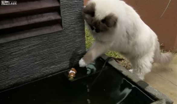 بالفيديو.. "قط" ينقذ "سمكة" بإعادتها للمياه