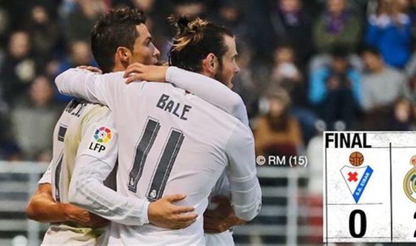 استعاد فريق ريال مدريد الإسباني توازنه بالفوز على مضيفه ايبار بهدفين دون مقابل باللقاء الذى جرى مساء اليوم الأحد على الملعب البلدي إبوروا ضمن مواجهات الجولة الـ13 من عمر الليجا الإسبانية.
