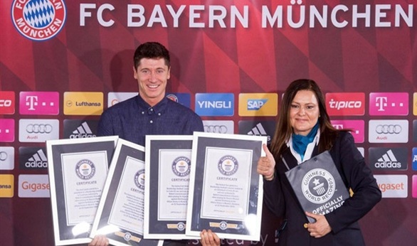 دخل البولندي روبرت ليفاندوفسكي مهاجم بايرن ميونيخ بطل الدوري الألماني لكرة القدم ومتصدر الترتيب الحالي، اليوم الاثنين رسميا موسوعة جينيس للأرقام القياسية بتسجيله 5 أهداف في أقل من 9 دقائق في مرمى فولفسبورج في سبتمبر الماضي.