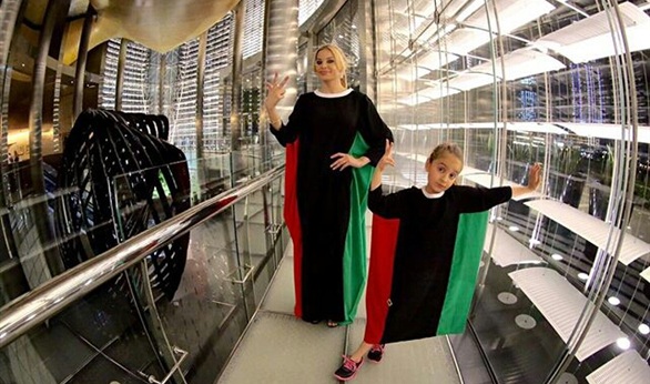 ونشرت "حوراني" صورة لها عبر "انستجرام" وهي ترتدي عباءة بالوان علم الامارات بصحبة ابنتها، وكتبت تعليقا "اتحاد الامارات ٤٤ عاما.