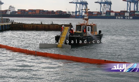 بالصور.. مناورة تدريبية لمكافحة بقعة زيت بميناء دمياط