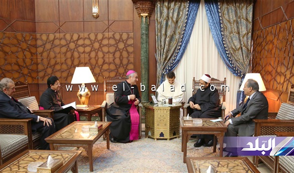 استقبل فضيلة الإمام الأكبر الدكتور أحمد الطيب، شيخ الأزهر الشريف، برونو موزاري، سفير الفاتيكان بالقاهرة، وذلك لبحث سبل الحوار المشترك بين الأزهر والفاتيكان.