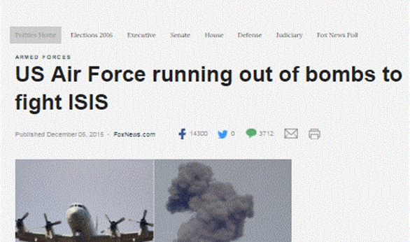 نقلت شبكة " FOX" نيوز عن رئيس أركان القوات الجوية الأمريكية الجنرال "مارك ويلش" قوله إن ذخائر الجيش الأمريكي بدأت تنفد فى ظل استمرار الحملة العسكرية ضد تنظيم "داعش" والتي بدأت قبل 15 شهرا.