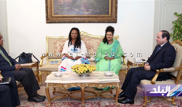 استقبل الرئيس عبد الفتاح السيسي اليوم ممثلتي وفد الدبلوماسية الشعبية الاثيوبي السيدة "هيروت ولد ماريام" نائبة رئيس جامعة أديس ابابا، والسيدة "مولو سولومون" الرئيسة السابقة لغرفة تجارة أديس ابابا، وذلك بحضور سفير إثيوبيا في القاهرة.