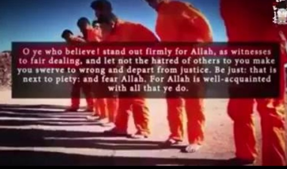 مقطع الفيديو الذي بثته مؤسسة «كفاح» بعنوان «مسلمون لا مجرمون» يظهر 10 أسرى من داعش يرتدون زيًا برتقالي ويقف خلفهم 10 مسلحين مقنعين بثياب سوداء من عناصر الجبهة.