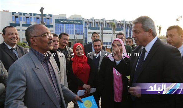 وزير الرياضة يلتقي العاملين بالمركز الأوليمبي أثناء جولته التفقدية