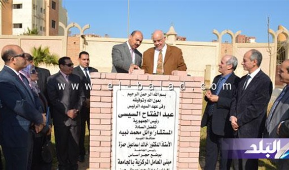 بالصور.. وضع حجر الأساس لمبنى المعامل المركزية البحثية بجامعة الفيوم