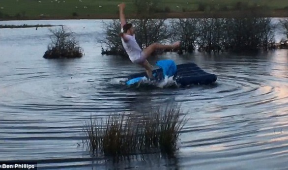 والتقط بن فيديو لما حدث لصديقه إليوت حيث ظلت المرتبة تطفو على سطح مياه البحيرة إلى أن وصلت إلى منتصفها، واستيقظ الشاب مفزوعا بينما ظل الصديق المخادع واقفا على الشاطيء يضحك بهستيريا.