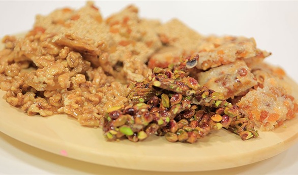 ضعي السكر مع الماء على النار حتى تحصلي على قوام متماسك، وضيفي الليمون والسوداني وافردي الخليط على مفرش سيليكون واتركيه يجمد وكسريه وقدميها باردة.