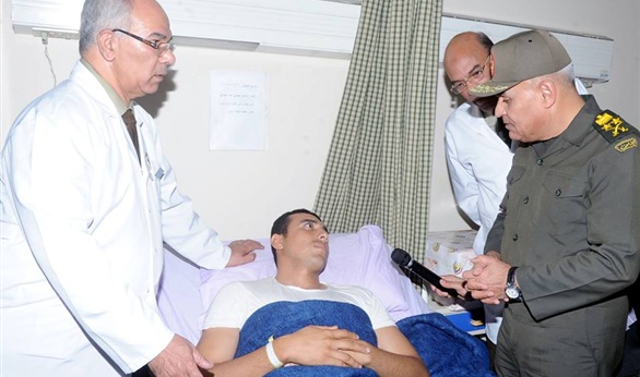 قام الفريق أول صدقي صبحي القائد العام للقوات المسلحة وزير الدفاع والانتاج الحربي بزيارة عدد من المصابين من ضباط وصف وجنود القوات المسلحة والشرطة ورجال القضاء والذين يخضعون حالياً لتلقي العلاج بمستشفيات القوات المسلحة بالمعادى والحلمية والمركز الطبى العالمى ومركز تأهيل العجوزة.