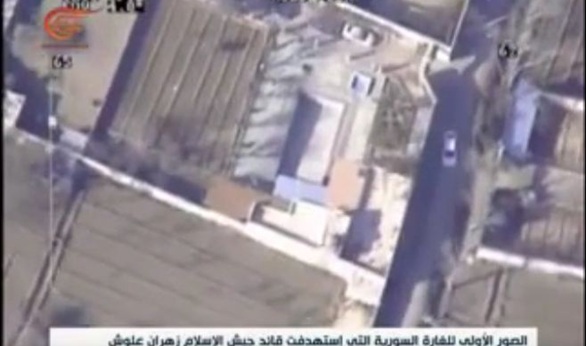 نشر فيديو عملية استهداف زهران علوش قائد ما يسمى بجيش الإسلام في سوريا في غارة استهدفت اجتماعا له مع قياداته.