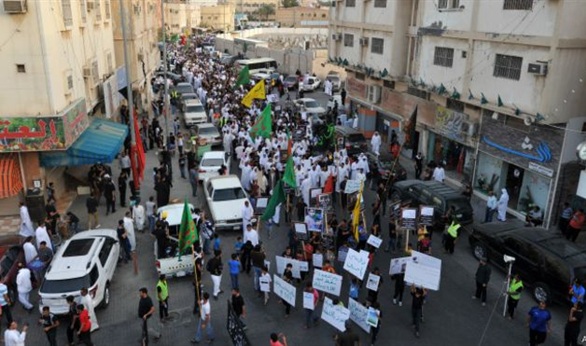 وتداول نشطاء مواقع التواصل الاجتماعي مقطع فيديو يظهر التظاهرات التي خرج فيها الشيعة السعوديون في مدينة القطيف.