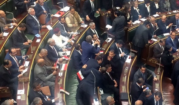 أعلام مصر وأغان وطنية بقاعة "النواب" قبل بدء الجلسة الإجرائية