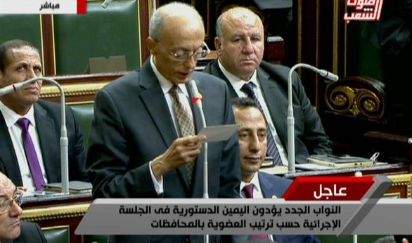 أدى النائب سامح سيف اليزل وأسامة هيكل وطاهر أبو زيد وعلاء عبد المنعم وأحمد سعيد، المنتمون لقائمة "فى حب مصر"، اليمين الدستورية بالجلسة الإجرائية الأولى لمجلس النواب.