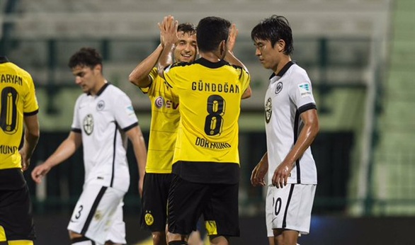 سحق فريق بروسيا دورتموند منافسه اينتراخت فرانكفورت برباعية نظيفة بالمباراة الودية التي جمعت بينهما مساء اليوم الثلاثاء بدبي فى اطار استعدادات الفريقين لاستئناف الدوري الألماني.