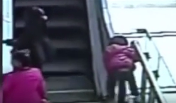وأظهر المقطع الذي صورته كاميرا مراقبة في مركز التسوق، الطفلة وهي تلعب مع طفلتين أخريين في أسفل السلم الكهربائي قبل أن تقوم بالصعود على درابزين السلم الذي رفعها إلى الأعلى.