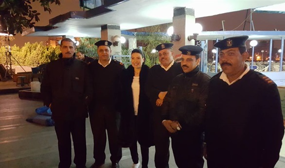 عبير صبرى مع رجال الشرطة في مطار القاهرة